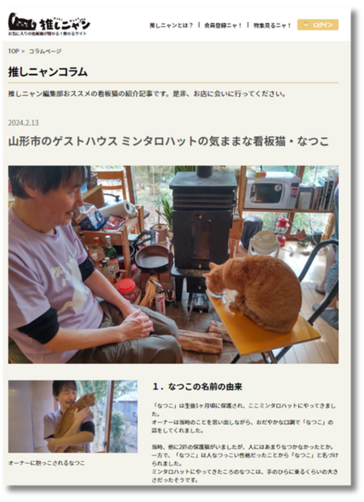 猫好きのためのサイト「推しニャン」での店舗紹介はこちら